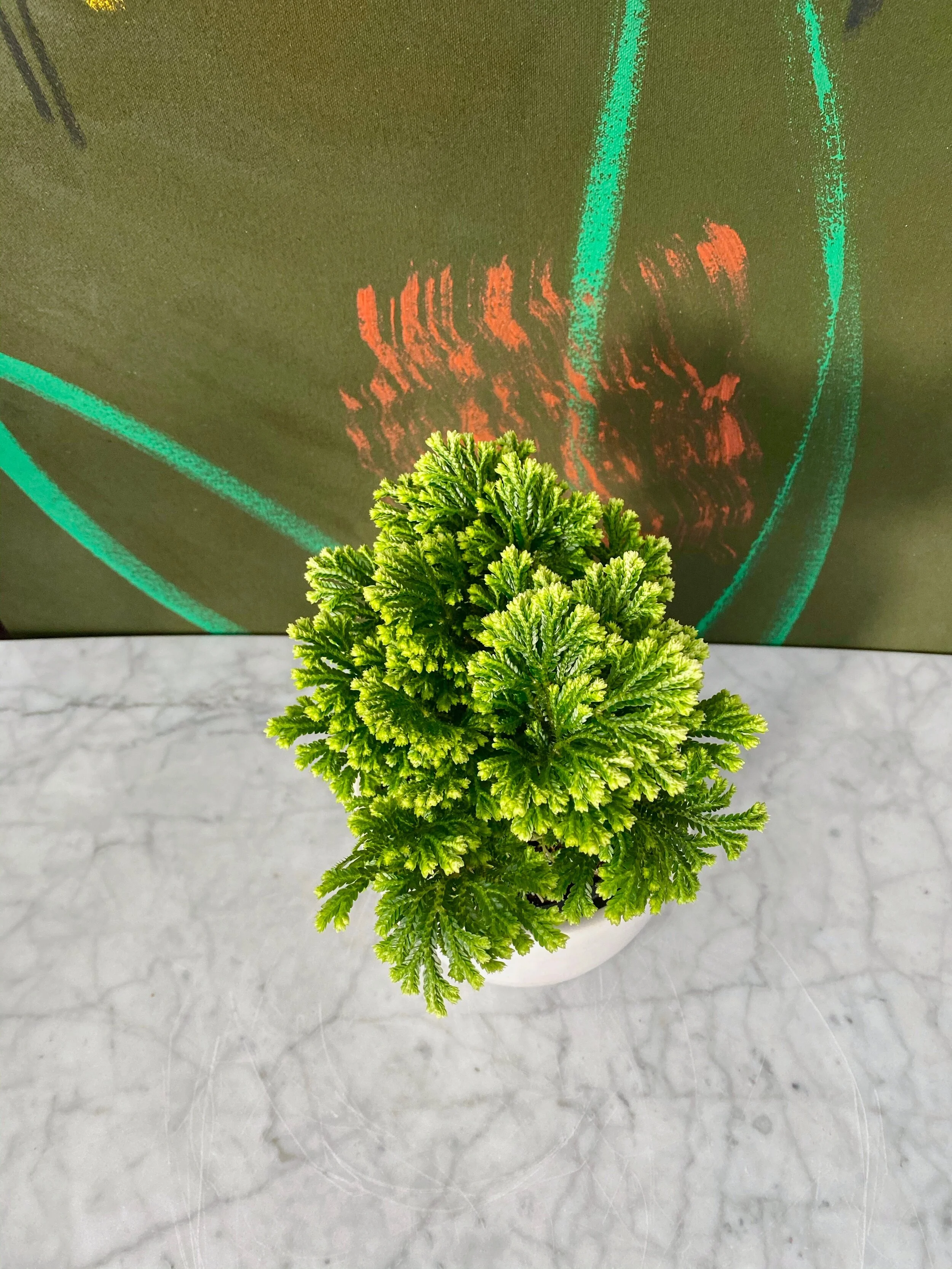 Fluffy ruffly leaves with yellow frosted tips gives this plant tons of charm.